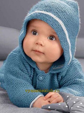Этот милый простой жакет, выполнен платочным узором, привлекает внимание - простотой в исполнении, дополнен карманами и отделкой в виде полос по краям изделия. Вязание спицами малышам от 3 до 24 месяца с описанием и схемами, см. далее.