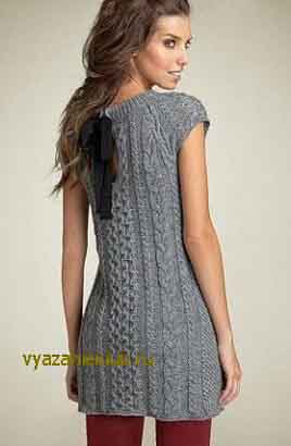 Молодежное платье с карманами можно носить и как сарафан, выполнено жемчужным узором и узором "косы". Вязание спицами для женщин с описанием и схемами, см. далее.