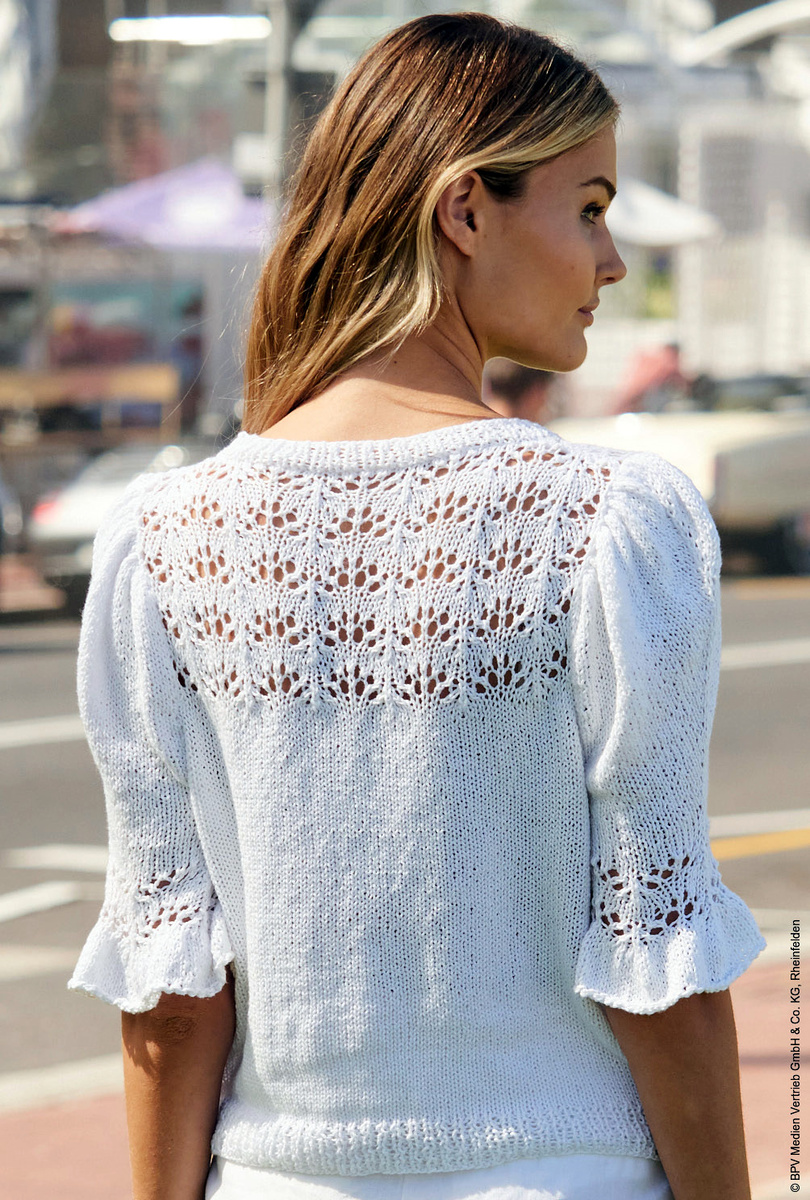 БЕЛЫЙ ДЖЕМПЕР С КОРОТКИМИ РУКАВАМИ И АЖУРНОЙ ОТДЕЛКОЙ